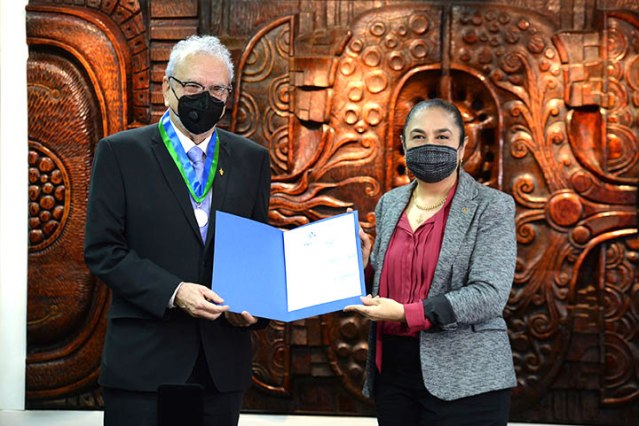 La Medalla al Mérito UV le fue entregada “por su invaluable defensa y preservación de la lengua de los pueblos originarios, particularmente de la lengua náhuatl, que ha realizado a través de la poesía”.