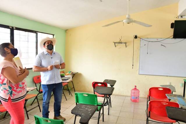 Así, en Camarón de Tejeda, mediante una inversión de 1.6 millones de pesos, son rehabilitados los edificios de la Telesecundaria José María Morelos y Pavón, en la localidad Rincón de Barrabás, y el Telebachillerato de la cabecera municipal.