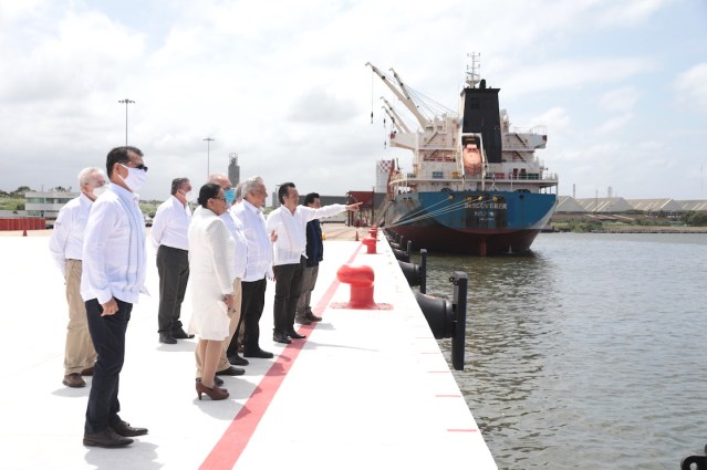 Este viernes, el mandatario federal y el gobernador Cuitláhuac García Jiménez supervisaron la conclusión de la prolongación de un muelle con capacidad de 10 toneladas por metro cuadrado qué podrá recibir dos buques de hasta 180 metros de manera simultánea. Su inversión fue de 330 millones de pesos.