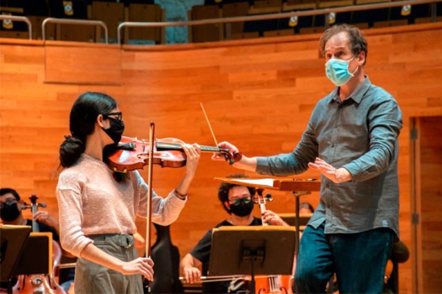 Xalapa, Ver., 24 de marzo de 2021.- La Orquesta Sinfónica de Xalapa (OSX) de la Universidad Veracruzana (UV) presenta su tradicional concierto de Pascua con obras de Hindemith, Mozart y Bruckner (arreglo de John Stringer), dirigido por su director titular, Martin Lebel, y acompañado por los talentos xalapeños Aisha Corona al violín y Yuri Bullón en la viola.