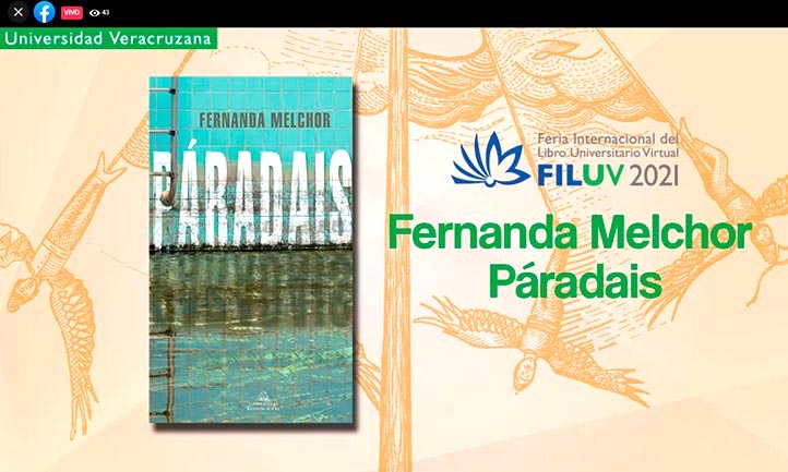 Xalapa, Ver., 30 de marzo de 2021.- Fernanda Melchor Pinto presentó Páradais, novela en la que aborda temas como la violencia y la desigualdad, la noche del 25 de marzo en la 1era Feria Internacional del Libro Universitario Virtual (FILU Virtual) de la Universidad Veracruzana (UV).