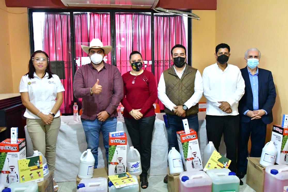 Durante la distribución de apoyos, consistentes en gel antibacterial, cloro, jabón líquido, desinfectante, aspersor de cinco litros, termómetro y manual sanitario contra COVID-19, el servidor público reconoció la labor del personal docente, administrativo, de apoyo y de los padres de familia a un año de iniciada la pandemia.