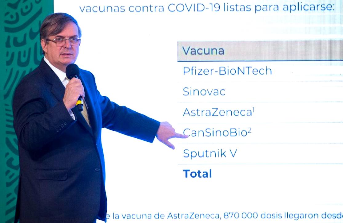 Entre las naciones que visitará el canciller Ebrard se encuentran Rusia, con quien tenemos un convenio por hasta 24 millones de dosis de la vacuna Sputnik V, de los cuales hemos recibido al día de hoy 900 mil dosis, y China, donde tenemos convenios con Sinovac, y con CanSino. Este último convenio es por 35 millones de dosis, de las cuales nos han entregado al día de hoy poco más de 1 millón.