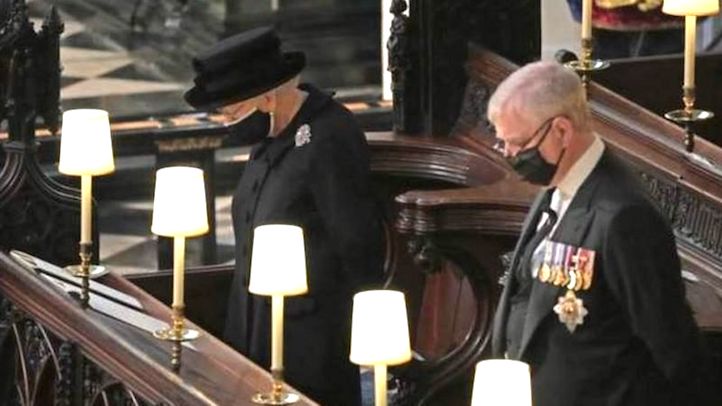La reina fue una de las primeras en tomar asiento dentro de la capilla, con su hijo el príncipe Andrés sentado a su izquierda.