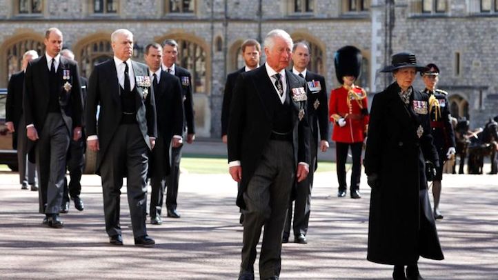 Caminando detrás del féretro se situaron los hijos del príncipe Felipe, los príncipes Carlos, Ana, Andrés y Eduardo.