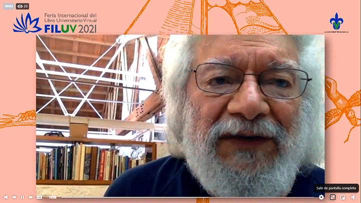 Xalapa, Ver., 28 de abril de 2021.- Helio Flores, caricaturista xalapeño galardonado en 2008 con el Doctorado Honoris Causa por la Universidad Veracruzana (UV), presentó la tarde del 23 de abril el libro Aventuras extravagantes del Infante Patatús, dentro de la 1era Feria Internacional del Libro Universitario Virtual (FILUV 2021).