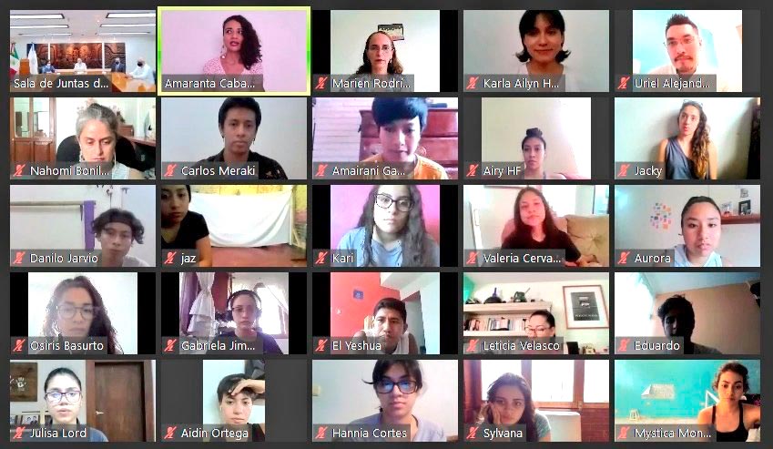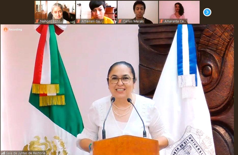 La presentación se desarrolló de manera virtual a través de la plataforma digital ZoomUV y fue seguida desde la Sala de Juntas de Rectoría, con la presencia de la rectora Sara Ladrón de Guevara; la secretaria Académica, Magdalena Hernández Alarcón; el director general del Área Académica de Artes, Miguel Flores Covarrubias, y el director general de Comunicación Universitaria, Raciel Martínez Gómez.