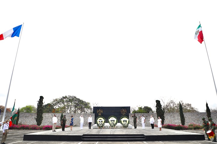 Ante el Mausoleo Franco-Mexicano, erigido en honor a los combatientes, fue presentado el parte francés a cargo del exlegionario y suboficial Bernardo Sánchez Arrieta, del segundo Regimiento Extranjero de Paracaidistas; siguió un toque de silencio por parte de la Legión Extranjera Le Boudin y se entonaron los himnos nacionales de Francia y México.