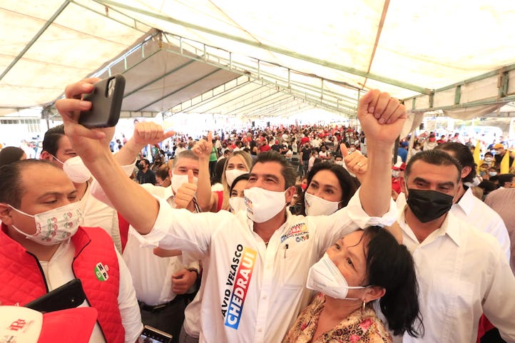 “David, eres una persona diferente a todos los demás, porque tienes experiencia, experiencia en la alcaldía de Xalapa, experiencia como empresario y yo estoy segura que esto va a permitir que reactive la economía en nuestra ciudad. David, el día de hoy soy la voz de todas las personas y, en específico, de los jóvenes y te digo que tenemos la capacidad, que confíes en nosotros, porque sabemos que vas a ganar y que nos vas a dar la oportunidad de trabajar contigo. El día de hoy 4 de mayo le damos un voto de confianza a Velasco Chedraui”, destacó la joven.