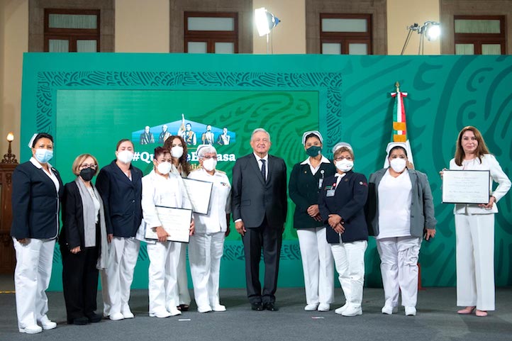 “Estamos gustosos de que se les entregue un reconocimiento simbólico a quienes están presentes y a todas las enfermeras en México nuestro abrazo, nuestra felicitación, nuestro reconocimiento, nuestro agradecimiento por su actitud humanista, fraterna, solidaria. Un abrazo a todas las enfermeras de México en nombre del gobierno que represento y creo que también lo puedo decir, en nombre de nuestro pueblo por todo lo que han hecho”, expresó.
