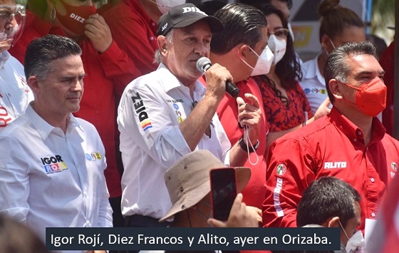 En Orizaba dialogó en privado con Diez Francos y luego caminó con él y con el candidato a diputado federal Igor Rojí a un pequeño mitin en el parque Castillo. Desde este municipio dialogó vía telefónica con el candidato a alcalde de Xalapa, David Velasco Chedraui, y le anunció que volverá en unos días más para encabezar un acto con él en la capital del Estado.