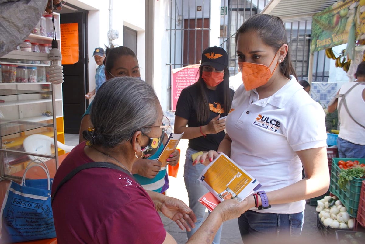 Xalapa, Ver., 25 de mayo de 2021.- En su recorrido por distintas calles del centro de la ciudad, comerciantes y vendedores en pequeño se quejaron ante la candidata de Movimiento Ciudadano a la diputación federal por Xalapa urbano, Dulce Méndez de la Luz Dauzón, del desplome de ventas en sus negocios derivado de la pandemia del Covid 19 y del nulo apoyo del gobierno, lo que ha provocado el cierre temporal o permanente de muchos comercios de las calles del centro y el despido masivo de los empleados en detrimento de sus familias.