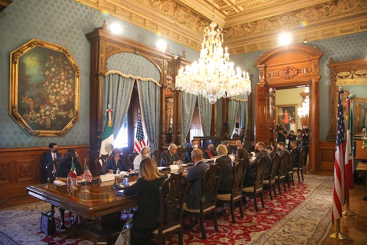 Como parte del encuentro sostuvieron una reunión bilateral en la que participaron por parte de México, el titular de la SRE y las secretarias de Gobernación, Olga Sánchez Cordero; de Medio Ambiente y Recursos Naturales, María Luisa Albores González y de Economía, Tatiana Clouthier Carrillo.
