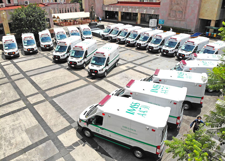 Veracruz, 17 de junio de 2020.- Como parte de la recuperación de los servicios, fue renovada y reforzada la plantilla vehicular de la Oficina de Representación Regional de Instituto Mexicano del Seguro Social (IMSS) en Veracruz Norte, en la cual se entregaron 24 ambulancias para traslados programados en las cinco zonas que conforman la circunscripción.