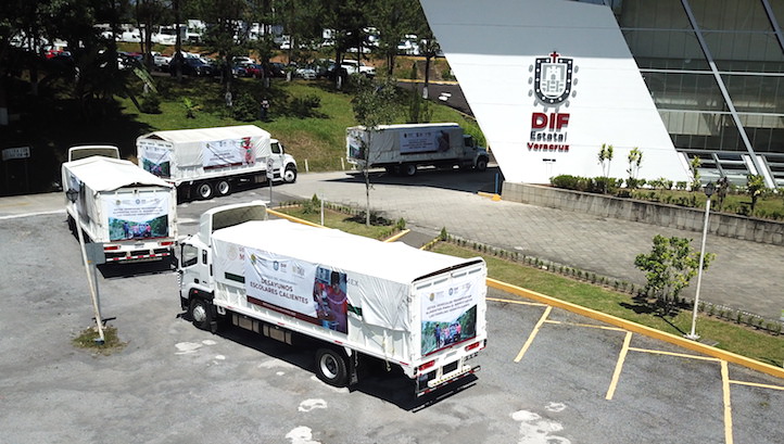 Desde las instalaciones del DIF Estatal salieron los primeros camiones a Xalapa, Alto Lucero, Banderilla, Emiliano Zapata, Coacoatzintla, Coatepec y Teocelo cargados con suministros para habitantes de zonas urbanas y rurales en alto y muy alto grado de marginación, mediante Desayunos Escolares Fríos y Calientes, dirigido a estudiantes de nivel básico que asisten a planteles públicos.