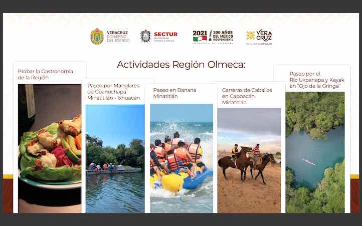 Al mismo tiempo, los amantes de la naturaleza podrán pasear por los manglares de Coanochapa y el río Uxpanapa, hacer kayak en el Ojo de la Gringa, disfrutar carreras de caballos en Capoacán y participar en un triatlón y competencia de natación en aguas abiertas, además de probar la exquisita gastronomía local.