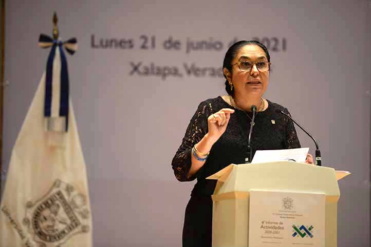 Xalapa, Ver., 21 de junio de 2021.- La rectora de la Universidad Veracruzana (UV), Sara Ladrón de Guevara, rindió su IV Informe de Actividades, el cual marca el final de su gestión al frente de esta casa de estudios, y en su mensaje al Consejo Universitario General (CUG) señaló que, para ella, ha sido el más alto honor de su vida encabezar ocho años de defensa de la Universidad y de su Autonomía.