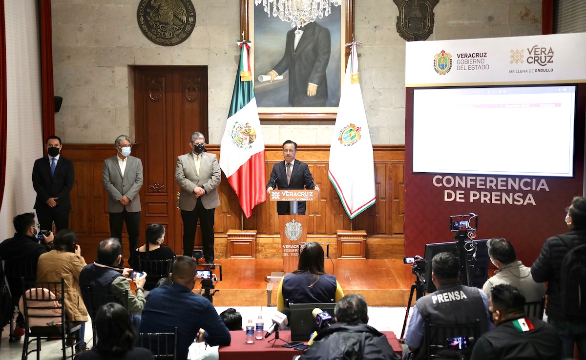 En la conferencia estuvieron presentes los titulares de las secretarías de Finanzas y Planeación, José Luis Lima Franco; Desarrollo Económico y Portuario, Enrique Nachón García, y Desarrollo Social, Guillermo Fernández Sánchez.