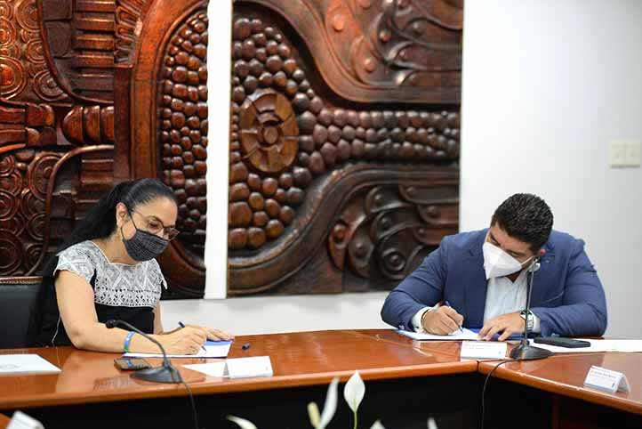 Xalapa, Ver., 08 de julio de 2021.- La Universidad Veracruzana (UV) y la Secretaría de Educación de Veracruz (SEV), encabezadas por Sara Ladrón de Guevara, rectora de esta casa de estudios, y Zenyazen Roberto Escobar García, titular de la dependencia estatal, firmaron este jueves un convenio de colaboración específico que establece las bases y mecanismos para el desarrollo del proyecto “Bosque Escuela”.