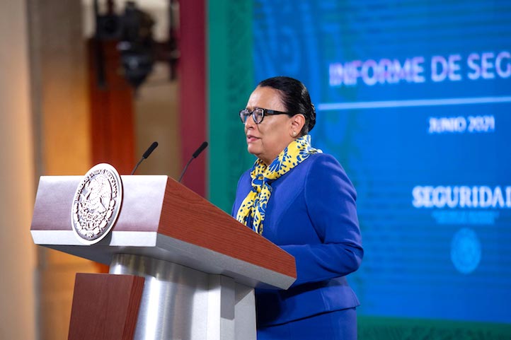 La secretaria resaltó que el delito de homicidio doloso se ha contenido; de enero a junio de 2021 disminuyó 3.5 por ciento respecto al mismo periodo del año anterior.