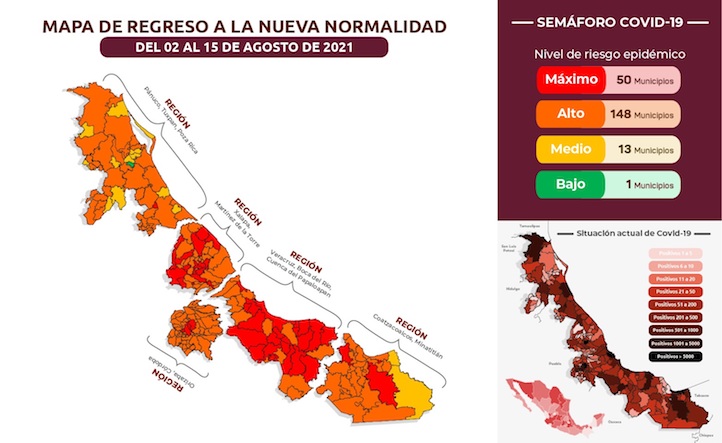La Federación mantiene a Veracruz en color naranja (riesgo alto) del Semáforo de Riesgo Epidémico, aplicable hasta el domingo 08 de agosto. A nivel estatal, del 02 al 15 de agosto, queda como sigue:
