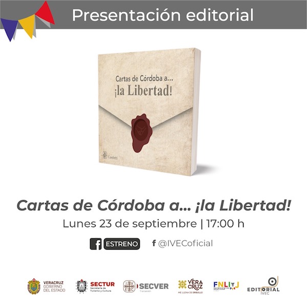 El IVEC invita a seguir la presentación editorial de Cartas de Córdoba a… ¡la Libertad! el 23 de agosto, a las 17:00 horas; y la presentación infantil el martes 24, en punto de las 12:00 horas, a través del Facebook @IVECoficial. Consulta la oferta cultural del IVEC y conoce los títulos de todas las colecciones del Instituto enwww.ivec.gob.mx.