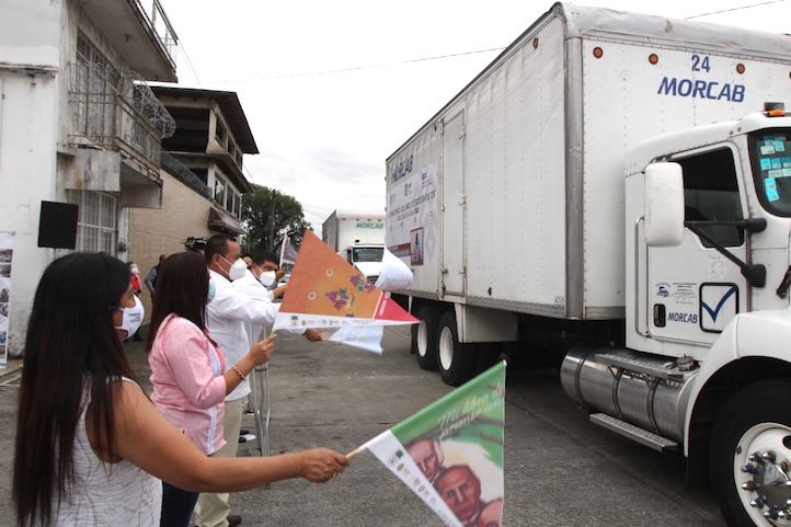 El titular de la SEV, Zenyazen Escobar García, encabezó este lunes el banderazo de salida de los camiones que transportarán los libros del nuevo ciclo escolar, que son una herramienta indispensable para la formación diaria en las aulas.