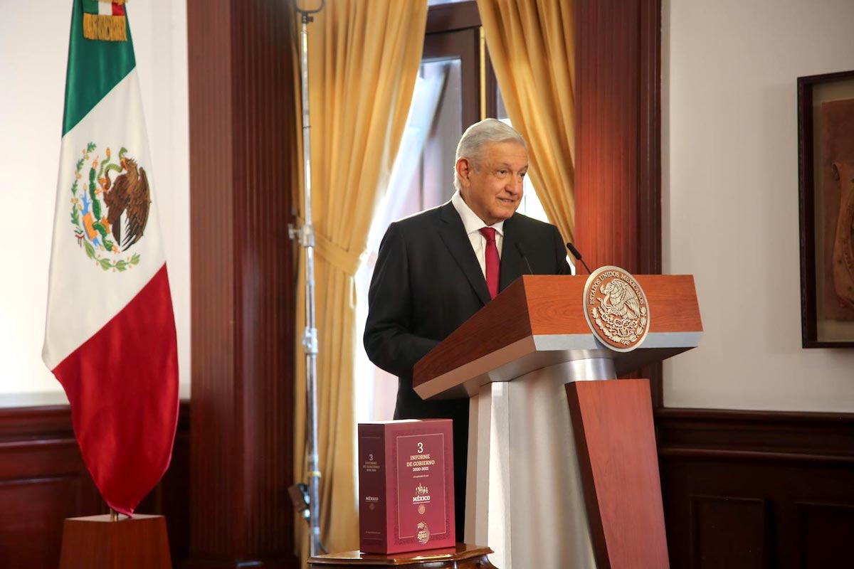 Ciudad de México, 01 de septiembre de 2021.- Por la mañana, el presidente de México, Andrés Manuel López Obrador, utilizó este miércoles su tercer informe de Gobierno para anunciar una reforma constitucional del sector eléctrico y esgrimir “récords históricos” en economía, pese a la crisis nacional de 2020.