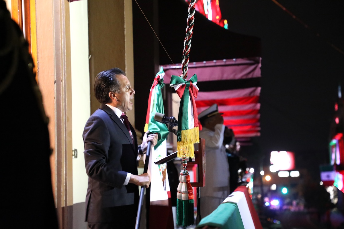 Desde el balcón de Palacio de Gobierno rememoró a los insurgentes José María Morelos y Pavón, Josefa Ortiz de Domínguez, Ignacio Allende, Juan Aldama y Vicente Guerrero, héroes que nos dieron patria y libertad hasta la consumación del movimiento con Los Tratados de Córdoba.