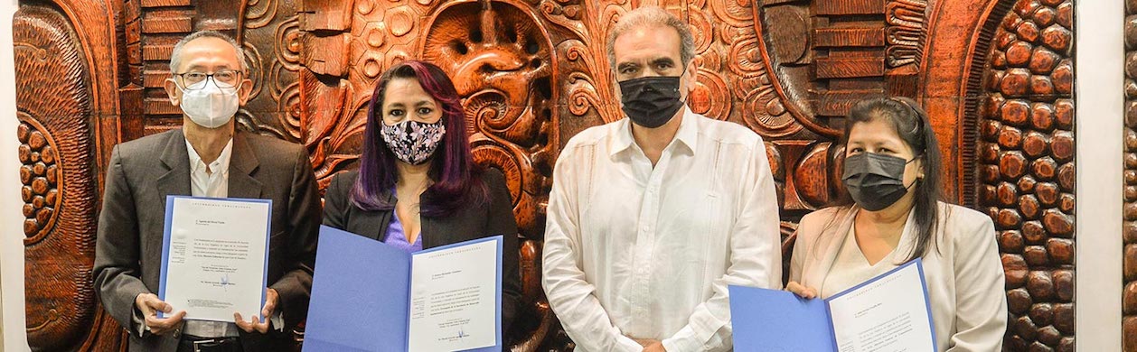 La ceremonia se llevó a cabo en la Sala de Juntas de la Rectoría, con la participación de las titulares de las secretarías Académica y de Administración de Finanzas, María Elena Rustrián Portilla y Lisbeth Viveros Cancino, respectivamente.