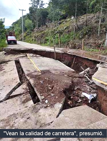Lo que sí deja duda es por qué el gobernador, en lugar de hacer válida la fianza de la empresa que realizó la obra, asumió la responsabilidad y ayer en forma sorpresiva declaró que su administración cuenta con el presupuesto para reparar las afectaciones. Atribuyó el destrozo del concreto hidráulico a un deslave, que “sucede en todos lados”.