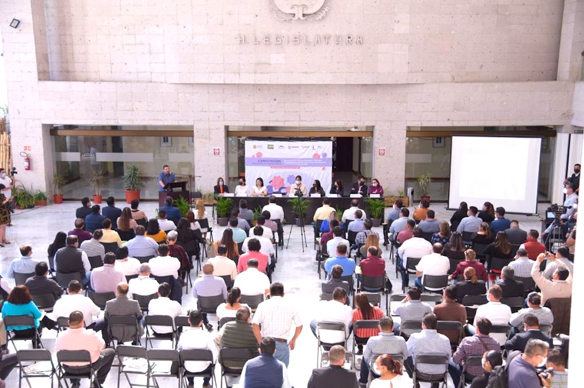 En presencia de la presidenta de la Mesa Directiva de la LXV Legislatura del Congreso del Estado, diputada Adriana Paola Linares Capitanachi, y de la presidenta de la Comisión Permanente de Hacienda del Estado, diputada Rosalinda Galindo Silva, el legislador distinguió que la presencia de las y los munícipes electos “demuestra su interés por sacar adelante buenos gobiernos para nuestros pueblos y que quieren empezar con el pie derecho”.