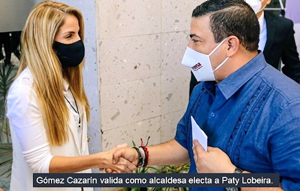 En un acto de total civilidad política, el diputado local de Morena Juan Javier Gómez Cazarín se portó ayer a la altura y en un acto celebrado en la explanada central del edificio del Congreso del Estado le dio un respetuoso y cálido apretón de manos a la alcaldesa electa de Veracruz, Paty Lobeira de Yunes, panista, distinguida integrante de la familia Yunes Linares-Márquez, esposa del excandidato a la gubernatura Miguel Ángel Yunes Márquez.