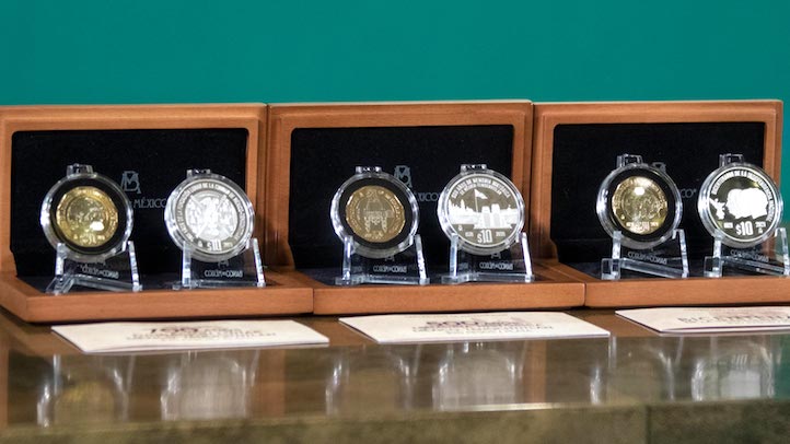 Por su parte, la secretaria de Economía, Tatiana Clouthier Carrillo, presentó las monedas conmemorativas que se hicieron en colaboración con el Banco de México. Cada una representa los 700 años de la fundación lunar de México-Tenochtitlan, 500 años de memoria histórica de México-Tenochtitlan y 200 años de la Independencia Nacional.