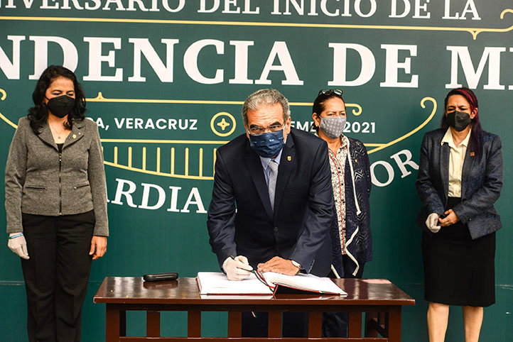 Además del rector, Martín Aguilar y el historiador Juan Ortiz Escamilla, participaron en esta ceremonia: Elena Rustrían, Lizbeth Viveros Cancino y Rebeca Hernández Arámburo, secretaria Académica, de Administración y finanzas, y de Desarrollo Institucional, respectivamente; así como, Marisol Luna Leal, abogada General.