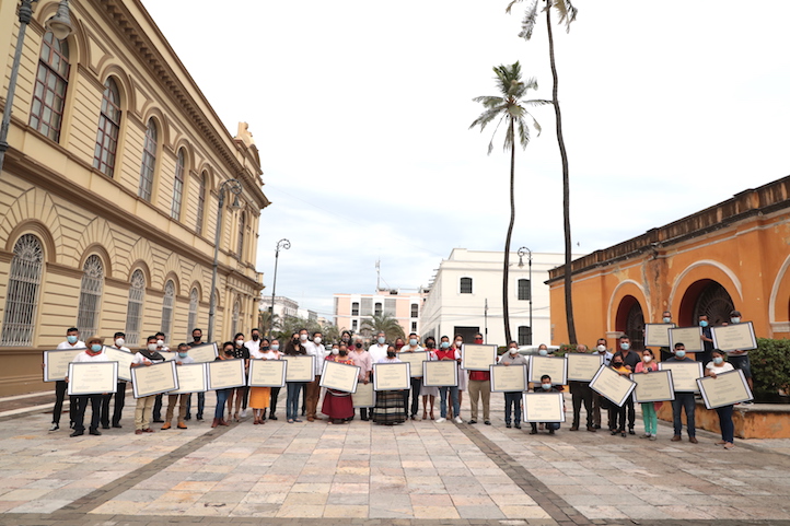 Veracruz, Ver., 08 de octubre de 2021.- “El Gobierno del Estado lleva a cabo una política permanente de apoyo al talento y reconocimiento al esfuerzo de los artesanos, propiciando las condiciones para el crecimiento del arte tradicional y los pueblos originarios”, expresó el titular de la Secretaría de Desarrollo Económico y Portuario (SEDECOP), Enrique Nachón García, al entregar el Premio Anual Artesanal Veracruzano 2021, cuya bolsa aumentó más del 100 por ciento en comparación con la del año pasado.