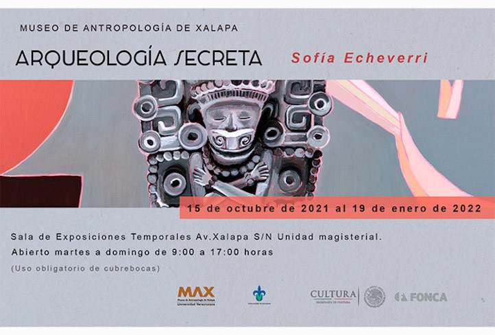 Xalapa, Ver., 12 de octubre de 2021.- A partir del viernes 15 de octubre, en la Sala de Exposiciones Temporales del Museo de Antropología de Xalapa (MAX) abrirá sus puertas al púbico la exposición Arqueología secreta, de Sofía Echeverri, una propuesta pictórica que cuestiona al espectador sugiriéndole reflexiones sobre los roles de género y haciendo uso del patrimonio simbólico universal para dar un lugar de potencia y equidad a la mujer.