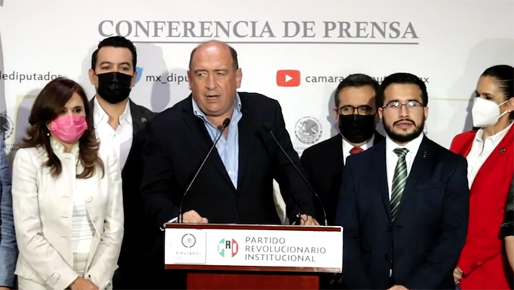 Ciudad de México, 12 de octubre de 2021.- Rubén Moreira Valdez, coordinador parlamentario del PRI, en conferencia de prensa informó que la alianza Va por México (PAN, PRI y PRD) alista una acción de inconstitucionalidad en contra de la revocación de mandato, ejercicio previsto para el 27 de marzo del 2022.