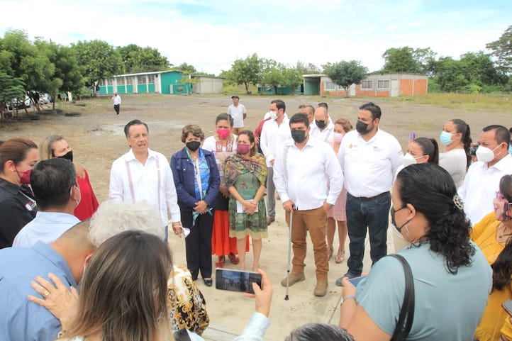 Acompañado de los titulares de la SEP y SEV, Delfina Gómez Álvarez y Zenyazen Escobar García, el gobernador Cuitláhuac García Jiménez entregó formalmente seis aulas didácticas, dirección, sanitarios y obra exterior con una inversión de 3 millones 107 mil 532 pesos, correspondientes al Fondo de Aportaciones Múltiples (FAM) 2020.
