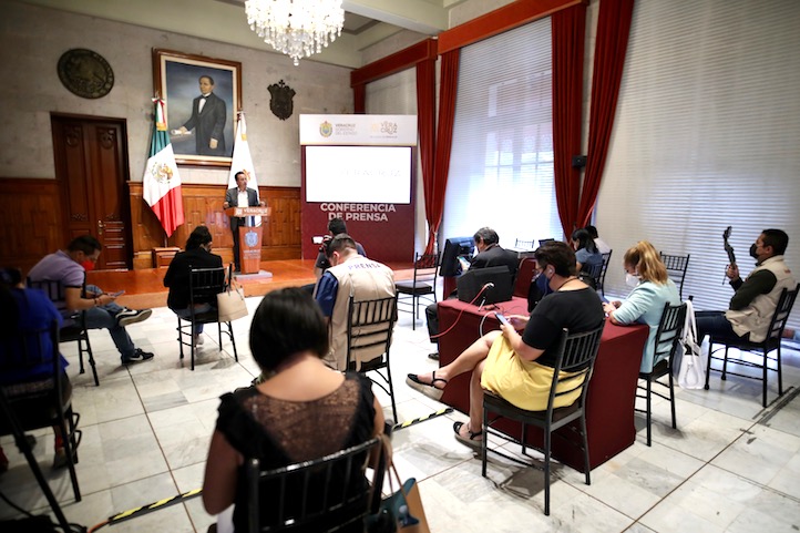 Xalapa, Ver., 25 de octubre de 2021.- En la conferencia de prensa de este lunes, el gobernador Cuitláhuac García Jiménez dio a conocer las fechas de aplicación de la vacuna contra COVID-19, en su segunda dosis, al sector de 18 a 29 años de edad en cuatro municipios con población numerosa.