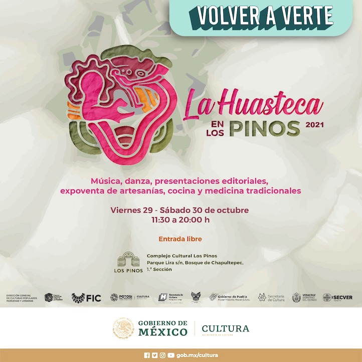 Xalapa, Ver., 27 de octubre de 2021.- La Dirección General de Culturas Populares, Indígenas y Urbanas de la Secretaría de Cultura federal, en coordinación con institutos y secretarías de Cultura de Hidalgo, Puebla, San Luis Potosí y Veracruz, llevará a cabo los días 29 y 30 de octubre la segunda edición del festival La Huasteca en Los Pinos.