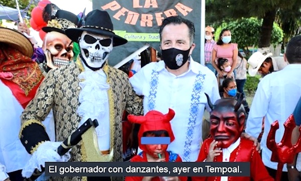Ayer, aprovechando que estuvo en Tempoal en gira de trabajo, no tuvo reparos en ponerse a bailar y a danzar con música típica de la Huasteca, aprovechando la festividad por el Día de Muertos.