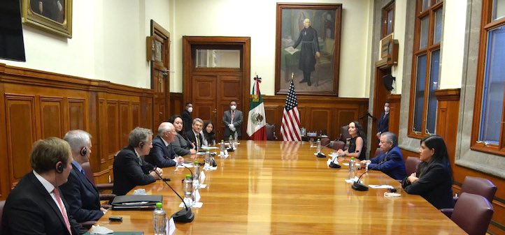 Ciudad de México, 03 de noviembre de 2021.- El día de hoy, en el edificio sede de la Suprema Corte de Justicia de la Nación, se llevó a cabo la reunión de trabajo entre el Ministro Presidente del Alto Tribunal, Arturo Zaldívar, y una delegación del gobierno de los Estados Unidos de América, integrada por el Sr. Embajador Ken Salazar; el Procurador Asistente Adjunto de los EUA, Bruce Swartz; y funcionarios del gobierno americano.