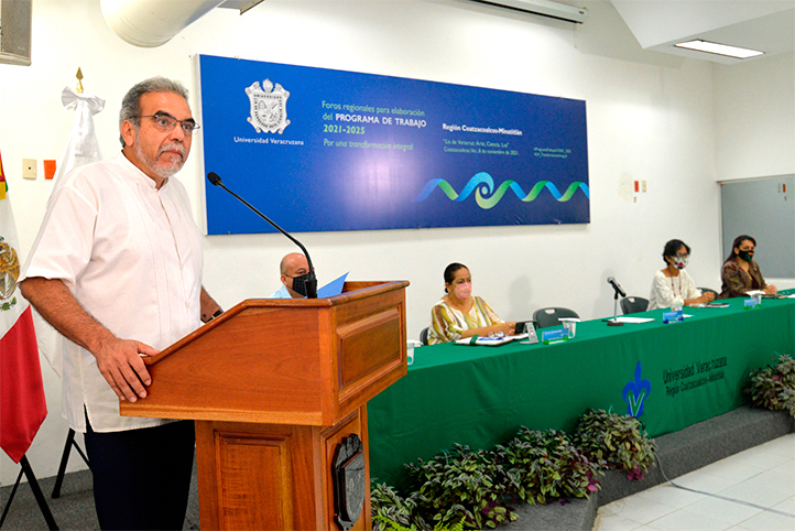 Coatzacoalcos, Ver., 08 de noviembre de 2021.- El rector de la Universidad Veracruzana (UV), Martín Aguilar Sánchez, encabezó el inicio de los foros regionales de consulta universitaria para la elaboración del Programa de Trabajo 2021-2025 “Por una transformación integral. Los derechos humanos y la sustentabilidad como ejes rectores”,en donde la comunidad académica, de investigadoras e investigadores y estudiantil hicieron aportes sobre derechos humanos y sustentabilidad, docencia e innovación académica, investigación, posgrado e innovación, difusión de la cultura, extensión de los servicios, y administración y gestión institucional.