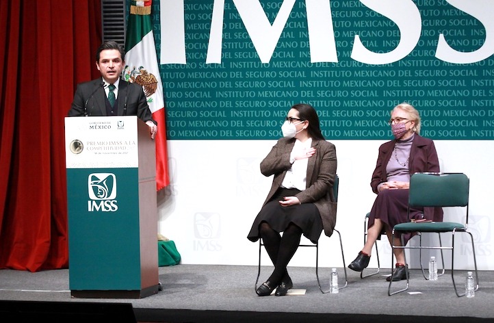 Durante la ceremonia de entrega de reconocimientos del Premio IMSS a la Competitividad 2021, destacó que el proceso de mejora continua en el Seguro Social se refleja en un día típico, con servicios y atenciones que nunca se detienen, incluso ante las dificultades que representó la emergencia sanitaria.