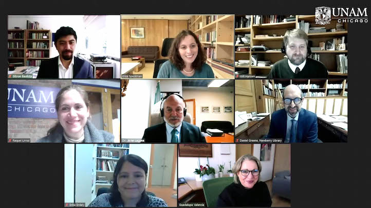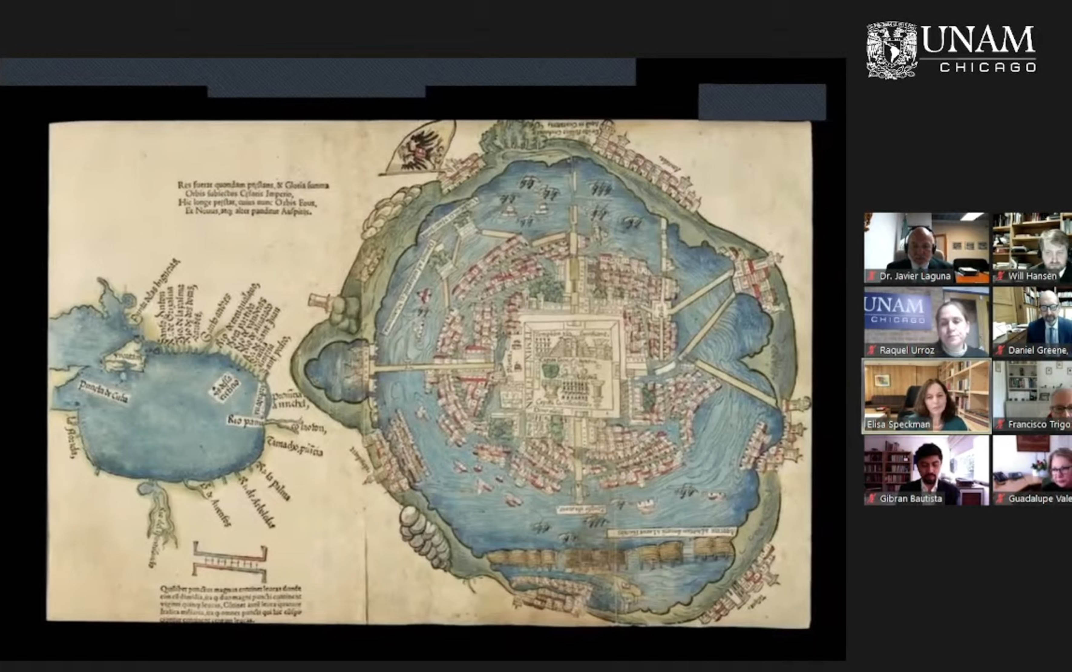 El funcionario universitario añadió que la colaboración fue renovada e incluye a los institutos de Geografía, así como de investigaciones Históricas, Filológicas, Estéticas y Bibliográficas, y los centros de Enseñanza para Extranjeros y de Investigaciones sobre América Latina y el Caribe. “Con el impulso del acuerdo, el presidente de The Newberry Library, Daniel Greene, ha tenido el gesto de entregar este regalo precioso: un facsímil de alta calidad del mapa de Cortés”. Durante la sesión a distancia destacó el papel clave que la UNAM-Chicago ha jugado en la relación entre ambas instancias.