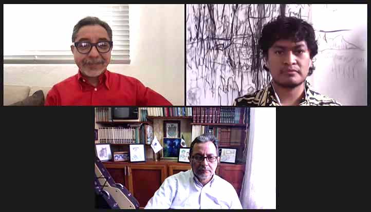 A continuación, Darío Alberto Meléndez Manzano, profesor de la Licenciatura en Artes Visuales de la Facultad de Artes Plásticas (FAP), habló sobre el curso en el que participa junto con Carlos Ernesto Ríos, docente en los Talleres Libres de Arte, y, por la UCM, Eduardo Barco Rojas, académico y artista, al igual que Virginia Frieyro Gutiérrez, integrante del Departamento de Dibujo de la Facultad de Bellas Artes de dicha institución.