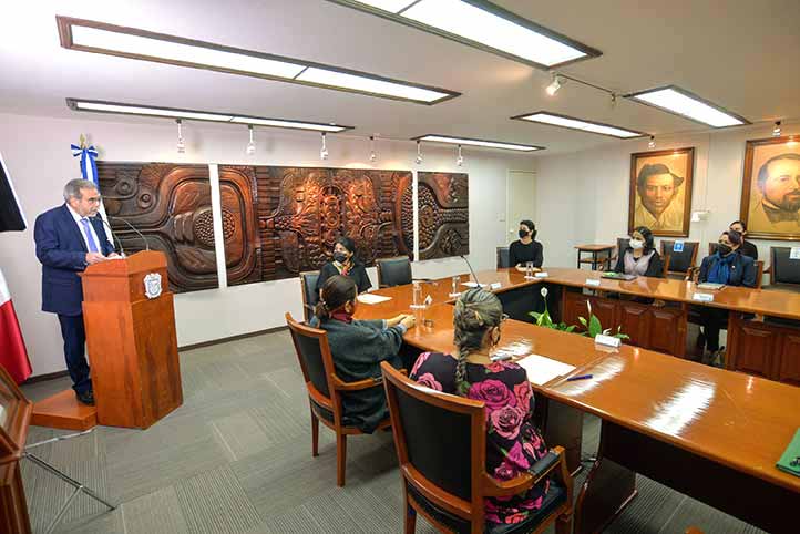 En el evento estuvieron presentes Elena Rustrián Portilla, secretaria Académica; Lizbeth Margarita Viveros Cancino, secretaria de Administración y Finanzas; Rebeca Hernández Arámburo, encargada de la Secretaría de Desarrollo Institucional; Marisol Luna Leal, Abogada General; Jaqueline del Carmen Jongitud Zamora, asesora de la Rectoría, y Anabel Ojeda Gutiérrez, coordinadora de la Unidad de Género.