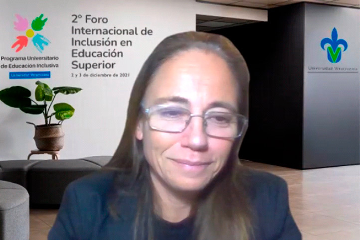 Xalapa, Ver., 09 de diciembre de 2021.- En el conversatorio “Compartamos universidad inclusiva: retos y avances”, del 2º Foro Internacional de Inclusión en Educación Superior, organizado por la Universidad Veracruzana (UV), expertos coincidieron en que, aunque existen avances en materia del reconocimiento de la diversidad, aún falta trabajar en la visibilización de la discapacidad y para ello las universidades deben posibilitar el ingreso a más personas con capacidades diferentes.
