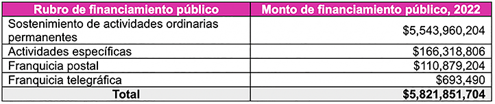 En tanto, el financiamiento público que corresponde a cada partido político nacional para el ejercicio 2022, una vez que se tuvo certeza del número que conservaría su registro, es la siguiente: